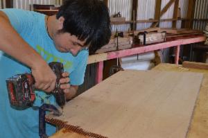 Charlie went about measuring and thinking out loud so I asked what it took to build a boat. He pointed to a chalk board where people wrote their names to get in line. There were four names there already. Next I learned there was a group of volunteers to assist in the boat building. "The idea is to have some kits to assemble so when someone comes in they can sort of take over with help and complete a boat without having any boat building experience." Charlie said. "At least that is sort of what has been kicking around for ideas."