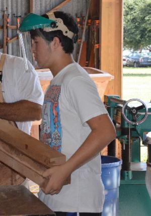Darrell Lynn is from UP… or the Upper Peninsula of Michigan. He had recently attended a wooden boat building program to continue his own growth in the craft. A former body builder who still carries himself with the quiet machismo of someone who has spent long hours lifting weights and running his own gym. But it is his easy going manner that makes him a great shop master. He can also yell out instructions louder than any shop machine that happens to be running while he is talking.