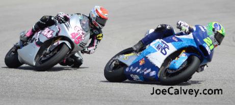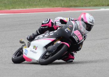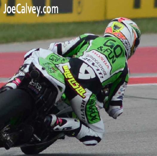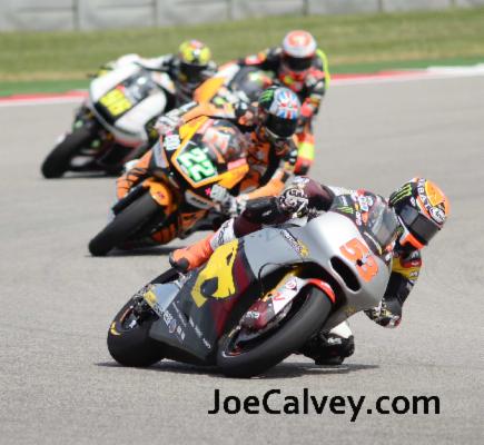 Who won the races? In Moto3 taking first place from the Red Bull KTM Ajo team Australian Jack Miller took to the winner’s podium when he averaged 89.97 mph around the track. His bike was manufactured by KTM. I’d like to say I captured the finish when Miller won by a nose over 2nd place finisher Romano Fenati of SKY Racing Team and 3rd place finisher Enfrain Vazquez of SaxoPrint’s team. Less than two tenths of a second separating the three riders over the 20 lap race made it the most exciting finish of the day. Just over 1 minute back was the only female in the race Ana Carrasco of Spain who guided her bike around the course at an average speed of 83.74 mph.