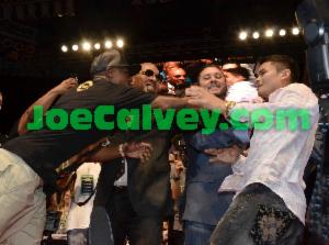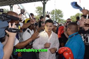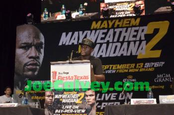 Trainer Robert Rodriguez came off as bitter towards Mayweather for never giving him a shot when he was a fighter in the ring. Garcia went so far as to say he would have beat him. When Mayweather took the microphone he pointed out Diego Corrales beat Garcia a fighter Mayweather disposed of.