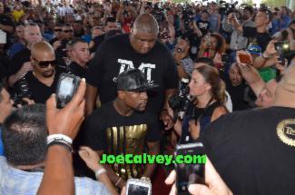 Mayweather keeps a large number of large guys around him who seemingly double as nannies for his children as well. I will give these big guys credit, when at one point I was in a spot where one of them wanted to be he politely addressed me as "Sir" and asked me if he could move one of the children around me. No pushing, no shoving, no growling. They were strictly professional and didn't try to interrupt my shots.