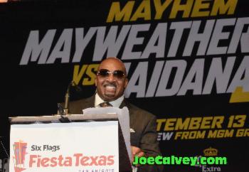Promoter Leonard Ellerbe is all smiles when he looked out and saw thousands of San Antonio fight fans show up for the Press (Pep Rally) Conference.